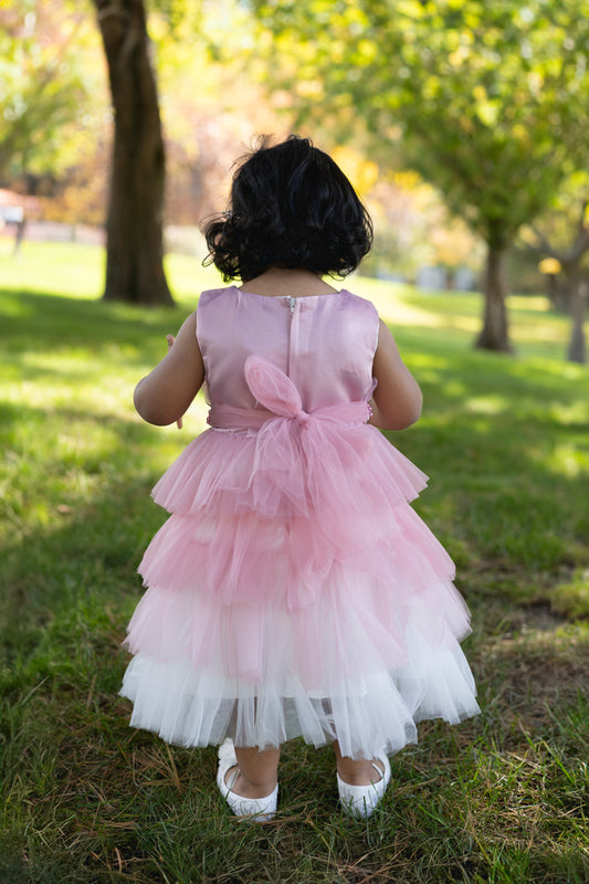 Pink and White Tulle Layered Dress