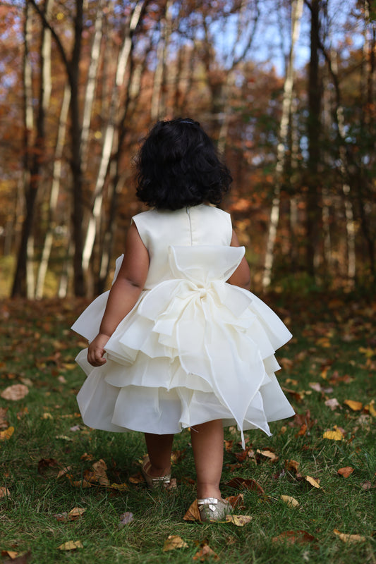 Multilayered Fluffy Floral Ivory Dress